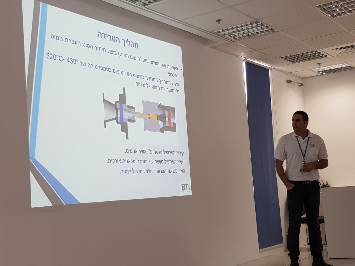 ניר, אחד מתלמידי הקבוצה, מסביר לפורום מנהלי BTI...